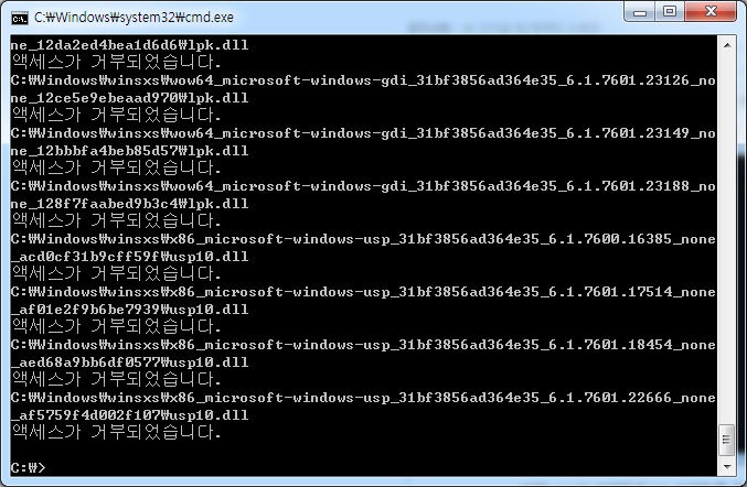 시스템자체에 들어있는 usp10.dll파일과 lpk.dll파일은 삭제가 되지않도록 기본적으로 설정이 되어있기 때문에 컴퓨터를 사용하시면서