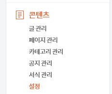 먼저, 콘텐츠 - 설정으로 들어갑니다.