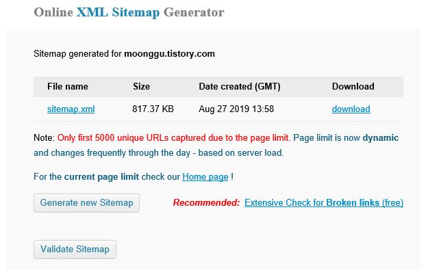 생성이 완료되면 사이트맵을 다운받을 수 있는 링크가 나옵니다.