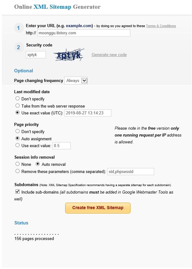 2번째 사이트맵 사이트는 느리지만 url생성에 제한이 없는 http://www.check-domains.com에 대해 다음 글에서 포스팅이어가도록 하겠습니다.